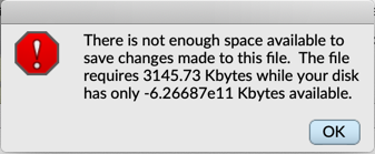 When I try to open a .spc file in a subfolder of the Kyma folder, I get an error message that I don't have enough disk space. What does Kyma mean and what can I do here?